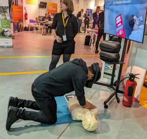 Ce stand, ouvert au public et particulièrement aux étudiants leur a permis de s’immerger dans la pratique et la découverte des métiers du bâtiment et de l’électricité grâce à des expériences en réalité virtuelles : manipulations électriques en respectant les règles de sécurité, manipulation d’une grue de chantier, pratique du massage cardiaque, découverte des ambiances sonores de différentes industries, utilisation d’un transpalette).