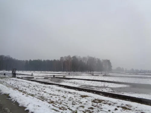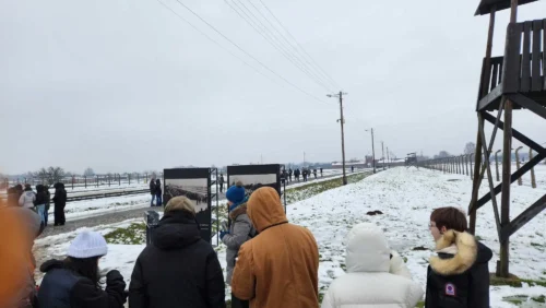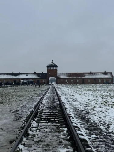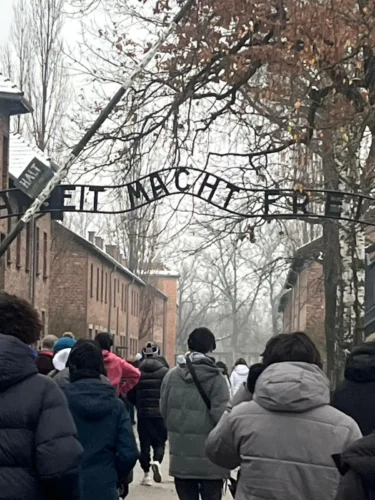 Nous sommes partis du lycée à 4h du matin, direction Cracovie où nous avons débuté par la visite du camp de Birkenau où 1,1 million de personnes ont été assassinées. Dans un froid glacial, nous avons parcouru les allées du site, saisis par sa grandeur et l’atmosphère pesante.