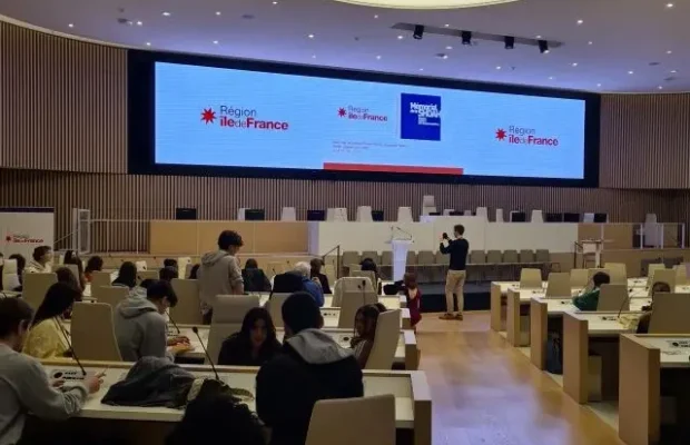 La restitution du projet « Vision par les jeunes d’Ile de France- Auschwitz- Birkenau » a lieu lieu jeudi 26 mars dernier à la Région Ile de France. Les élèves de TG1 ont pu présenter leur panneau à presque 600 lycéens, venus comme eux restituer leur travail.
